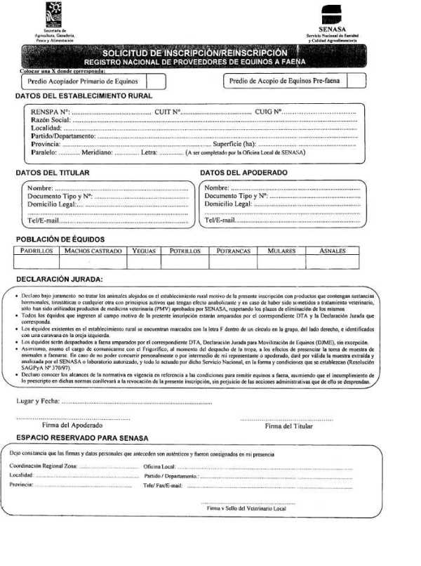 Proveedores de Equinos a Faena. Inscripción y/o reinscripción.