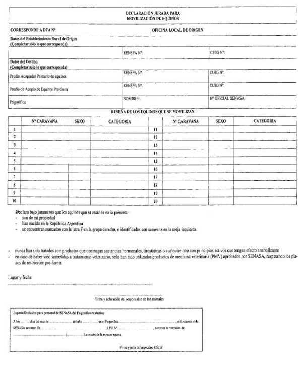 remitente de equinos deberá presentar UNA (1) Declaración Jurada -