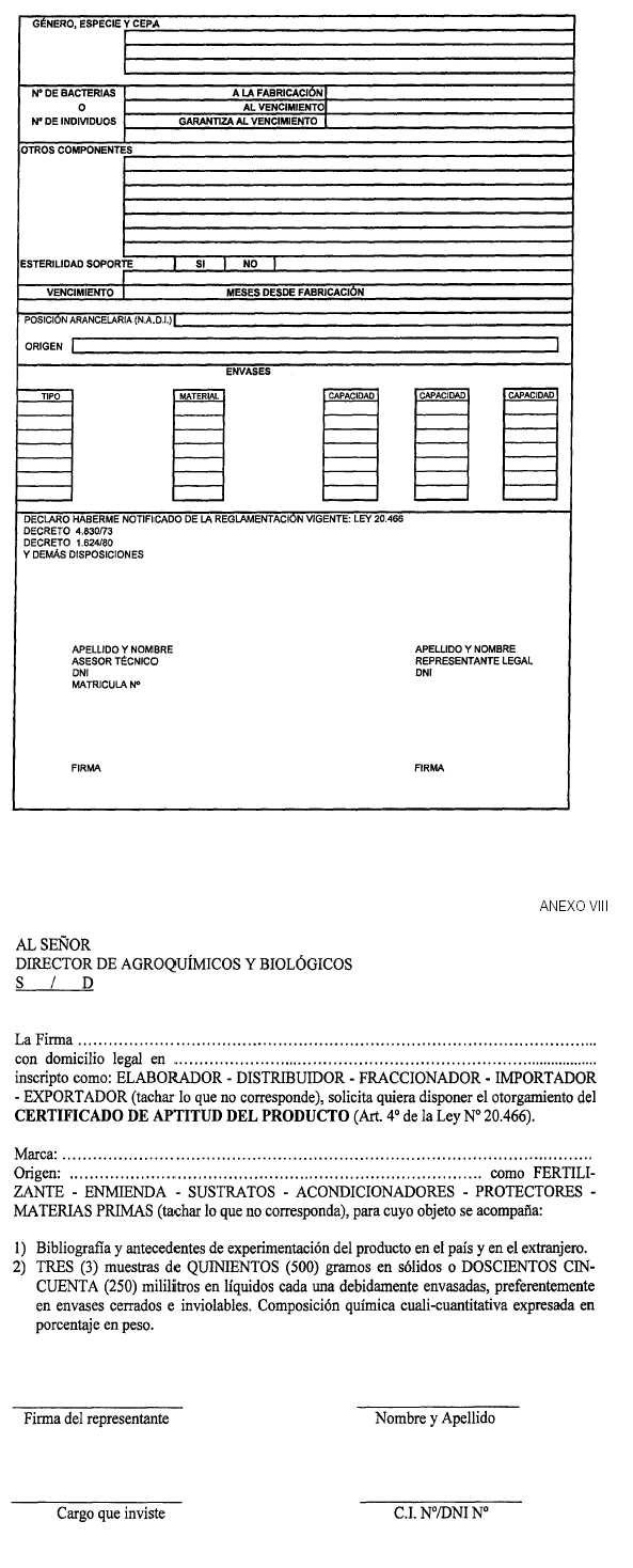 Preinoculado" que como Anexo VII forma parte de la presente resolución.