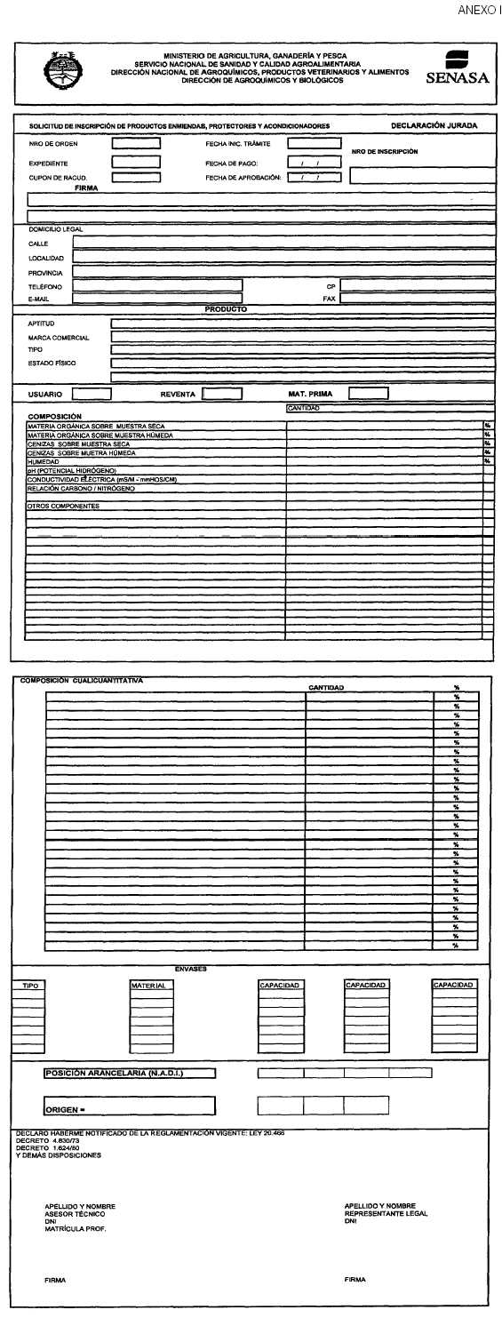 aprueba el formulario "Solicitud de Inscripción de Productos Enmiendas,