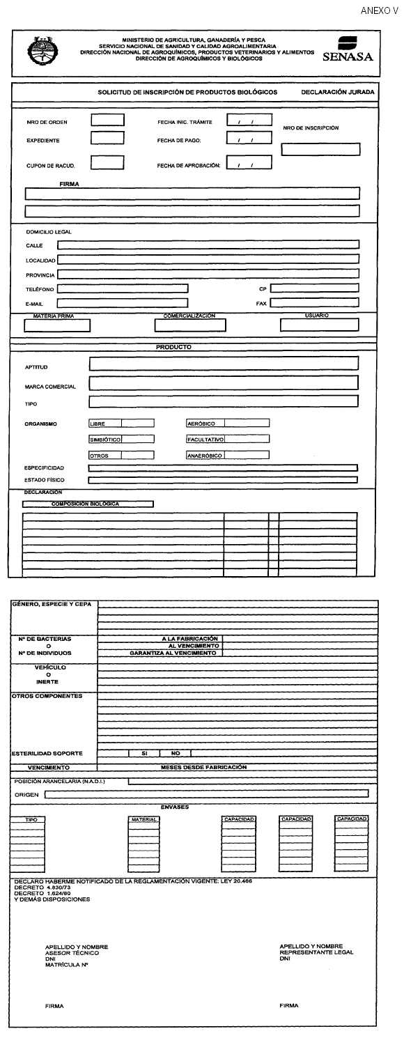 aprueba el formulario "Solicitud de Inscripción de Productos Biológicos"