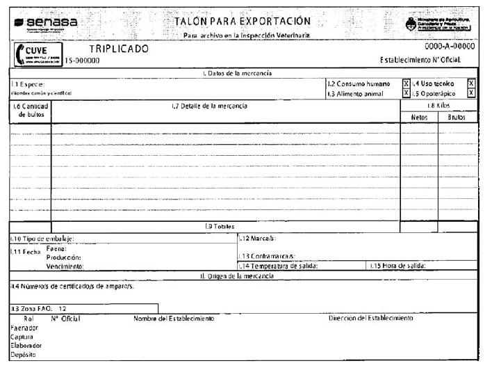 (1) triplicado denominado “Talón de Exportación” (Anexo 2,