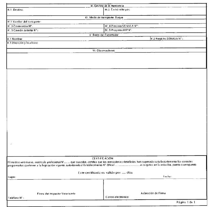 “Certificado Sanitario Provisorio de Exportación”, UN (1)