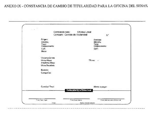 DE CAMBIO DE TITULARIDAD PARA LA OFICINA DEL SENASA” (Anexo IX de la
