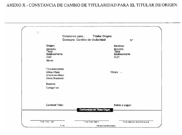 TITULAR DE ORIGEN” (Anexo X de la presente resolución) y la “CONSTANCIA