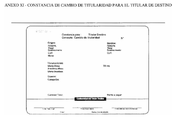 DE CAMBIO DE TITULARIDAD PARA EL TITULAR DE DESTINO” (Anexo XI de la
