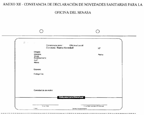 declaración de novedades sanitarias ante la Oficina Local del SENASA