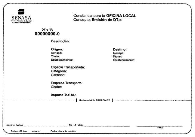 resolución). La constancia para la Oficina Local del SENASA no se