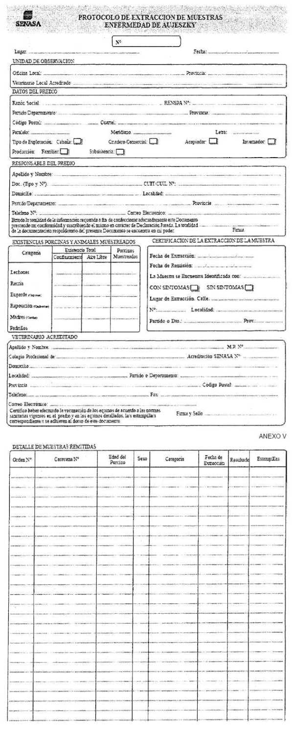 diagnóstico de la Enfermedad de Aujeszky, aprobadas por el SENASA a
