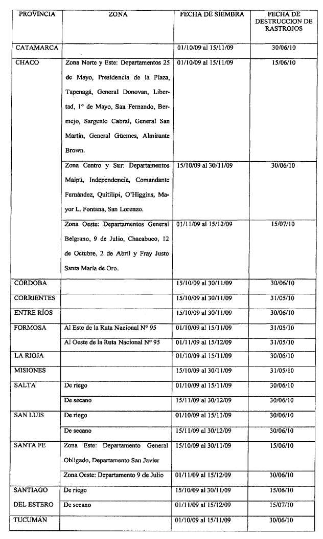 fechas anuales obligatorias para la siembra del algodón y para la