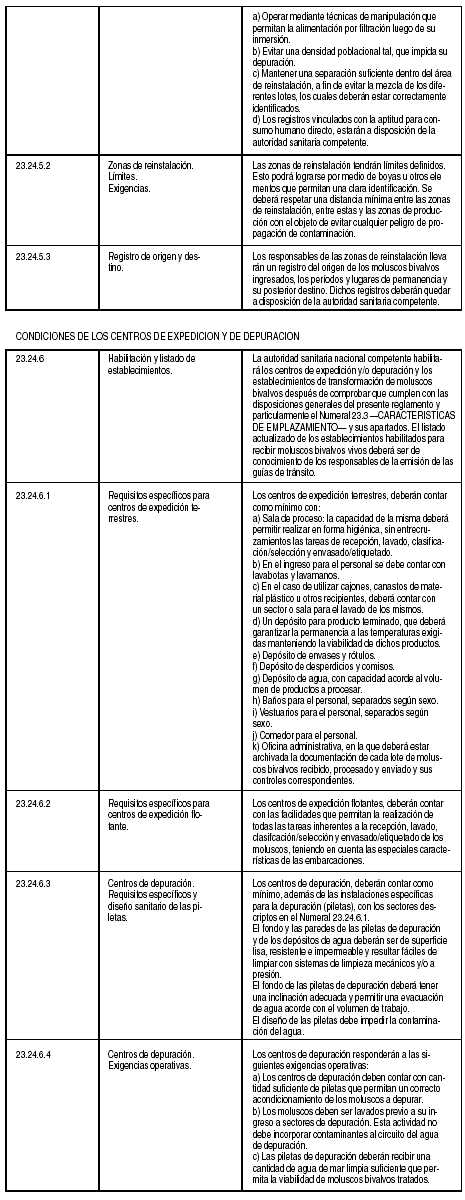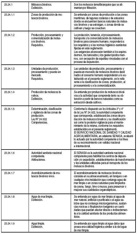 Que el Numeral 23.24 reglamenta desde el punto de vista higiénico sanitario la