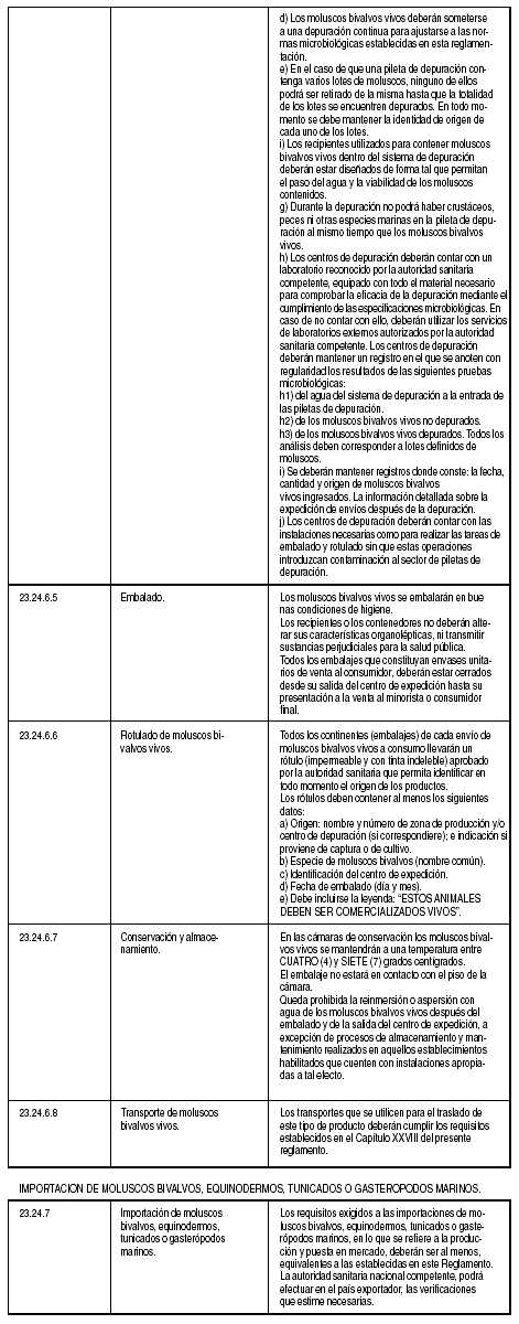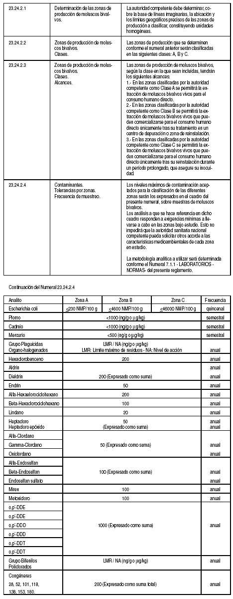 MOLUSCOS BIVALVOS DESTINADOS A CONSUMO HUMANO