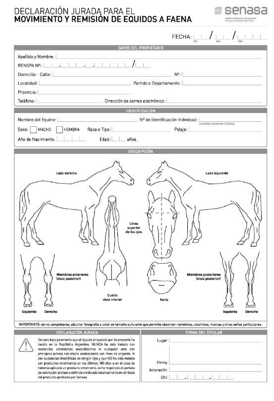 Declaraciones Juradas para el Movimiento y Remisión de Equidos a Faena)