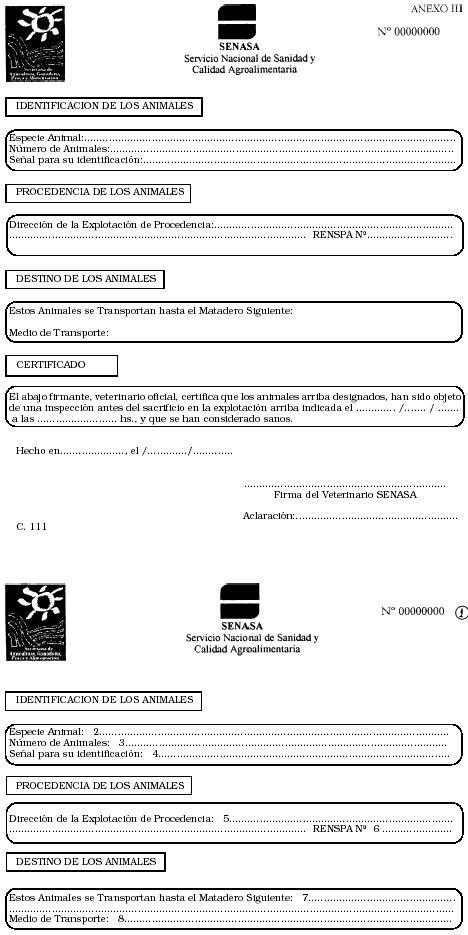 exportación, para ser trasladadas hasta el frigorífico, deberán cumplimentar