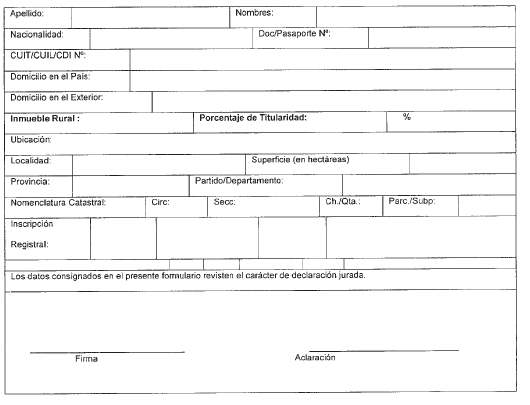 Poder Ejecutivo Nacional TIERRAS RURALES - LEY 26.737 - REGLAMENTACION Decreto (PEN) 274/12. Del: 28/2/2012. B.O.: 29/2/2012. Apruébase la reglamentación de la Ley Nº 26.737 que estableció el Régimen de Protección al Dominio Nacional sobre la Propiedad, Posesión o Tenencia de las Tierras Rurales. Bs. As., 28/2/2012 VISTO el Expediente Nº S04:0007215/2012 del registro del MINISTERIO DE JUSTICIA Y DERECHOS HUMANOS, la Ley Nº 26.737, y CONSIDERANDO: Que corresponde precisar, por vía reglamentaria, los mecanismos para dar cumplimiento a las limitaciones previstas por la Ley Nº 26.737, así como las instancias de su progresiva implementación. Que por el artículo 14 de la Ley Nº 26.737, sancionada por el HONORABLE CONGRESO DE LA NACION el 22 de diciembre de 2011, se creó en el ámbito del MINISTERIO DE JUSTICIA Y DERECHOS HUMANOS, con integración del MINISTERIO DE AGRICULTURA, GANADERIA Y PESCA, el REGISTRO NACIONAL DE TIERRAS RURALES, como autoridad de aplicación. Que por su parte por el artículo 16 de la citada Ley se creó el CONSEJO INTERMINISTERIAL DE TIERRAS RURALES, el que será presidido por el MINISTERIO DE JUSTICIA Y DERECHOS HUMANOS y conformado por el MINISTERIO DE AGRICULTURA, GANADERIA Y PESCA, por la SECRETARIA DE AMBIENTE Y DESARROLLO SUSTENTABLE de la JEFATURA DE GABINETE DE MINISTROS, por el MINISTERIO DE DEFENSA y por el MINISTERIO DEL INTERIOR, además de los representantes de las provincias. Que el artículo 5º de la Ley Nº 26.737 dispone que, por vía reglamentaria, deben determinarse los requisitos que deberán observar las personas físicas y jurídicas extranjeras para acreditar el cumplimiento de las disposiciones de dicha norma. Que la norma referida establece la realización de un relevamiento catastral, dominial y de registro de las personas jurídicas que determine la propiedad y la posesión de tierras rurales. Que ha tomado la intervención que le compete la DIRECCION GENERAL DE ASUNTOS JURIDICOS del MINISTERIO DE JUSTICIA Y DERECHOS HUMANOS. Que el presente se dicta de conformidad con lo dispuesto por el artículo 99, incisos 1 y 2, de la CONSTITUCION NACIONAL. Por ello, LA PRESIDENTA DE LA NACION ARGENTINA DECRETA: Artículo 1º — Apruébase la reglamentación de la Ley Nº 26.737 que, como ANEXO I, forma parte del presente. Art. 2º — Comuníquese, publíquese, dése a la Dirección Nacional del Registro Oficial y archívese. ANEXO I REGLAMENTACION DE LA LEY Nº 26.737 ARTICULO 1º —