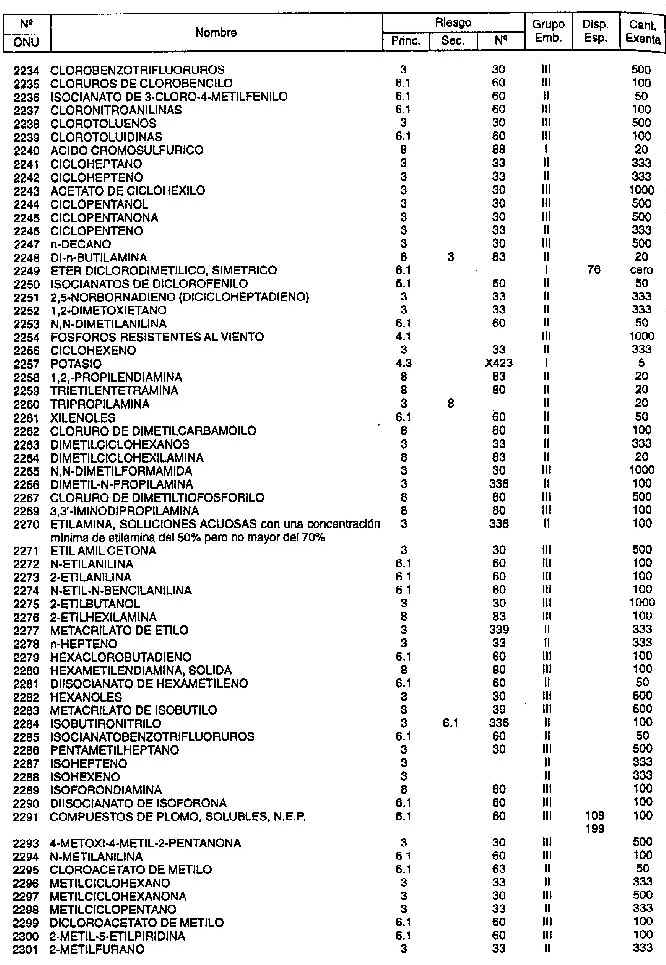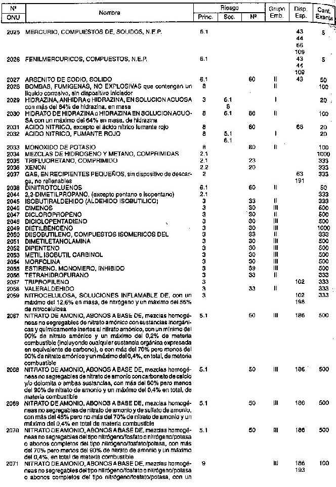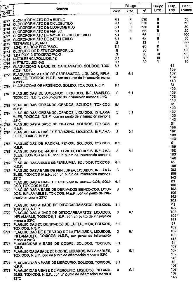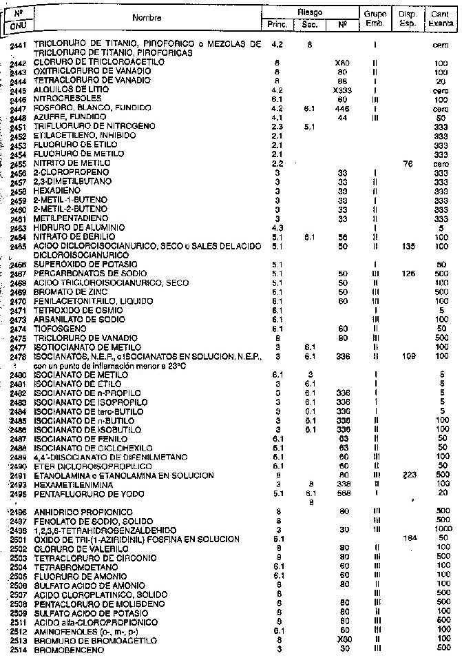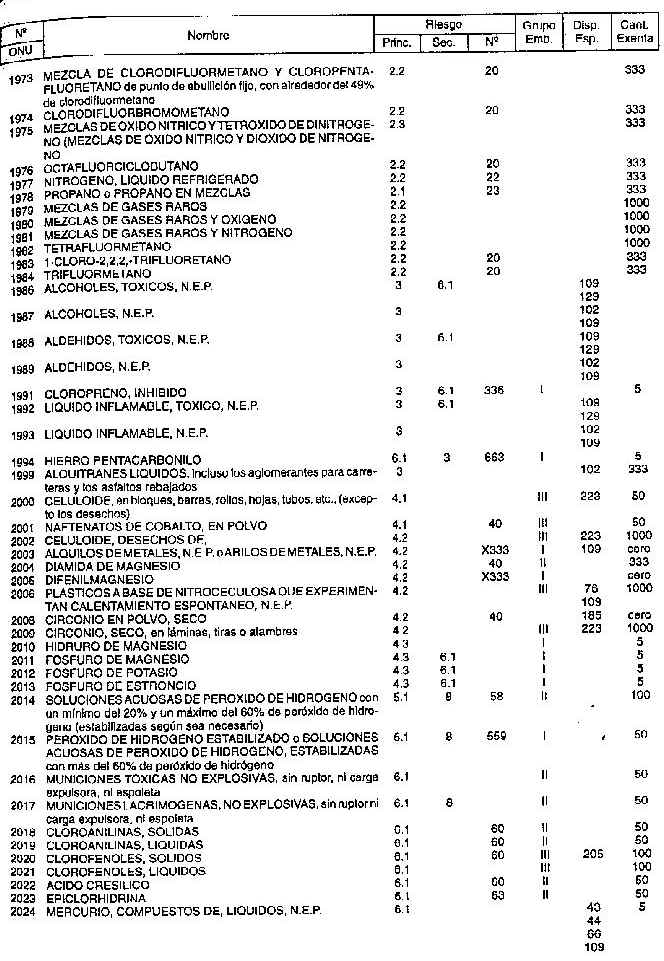 Resolución (SOPT) 195/97. Item 4.3 - Listado de mercancías peligrosas por orden numérico.