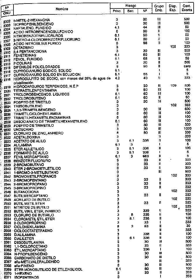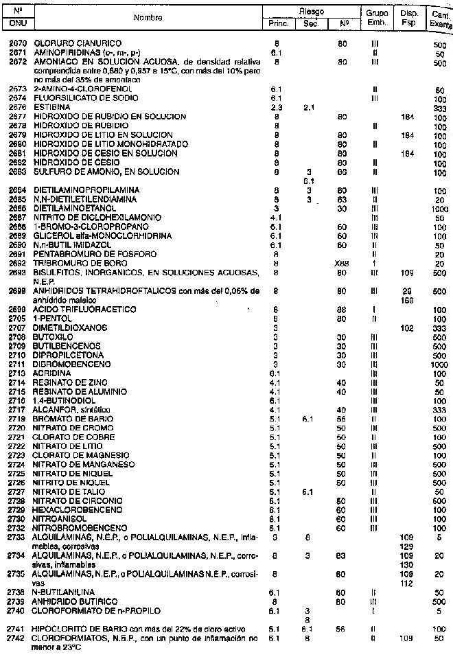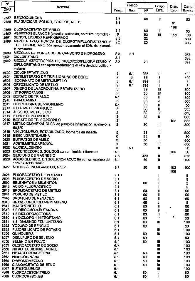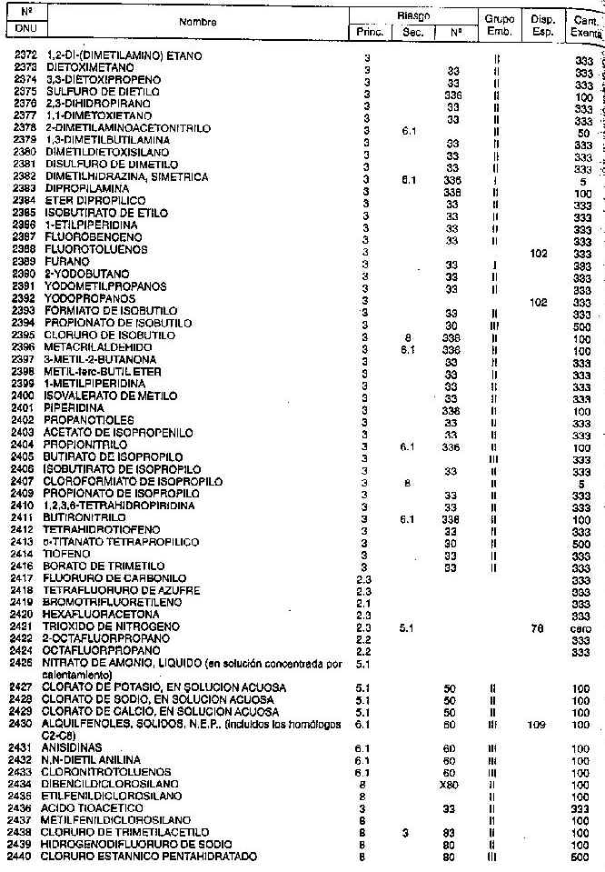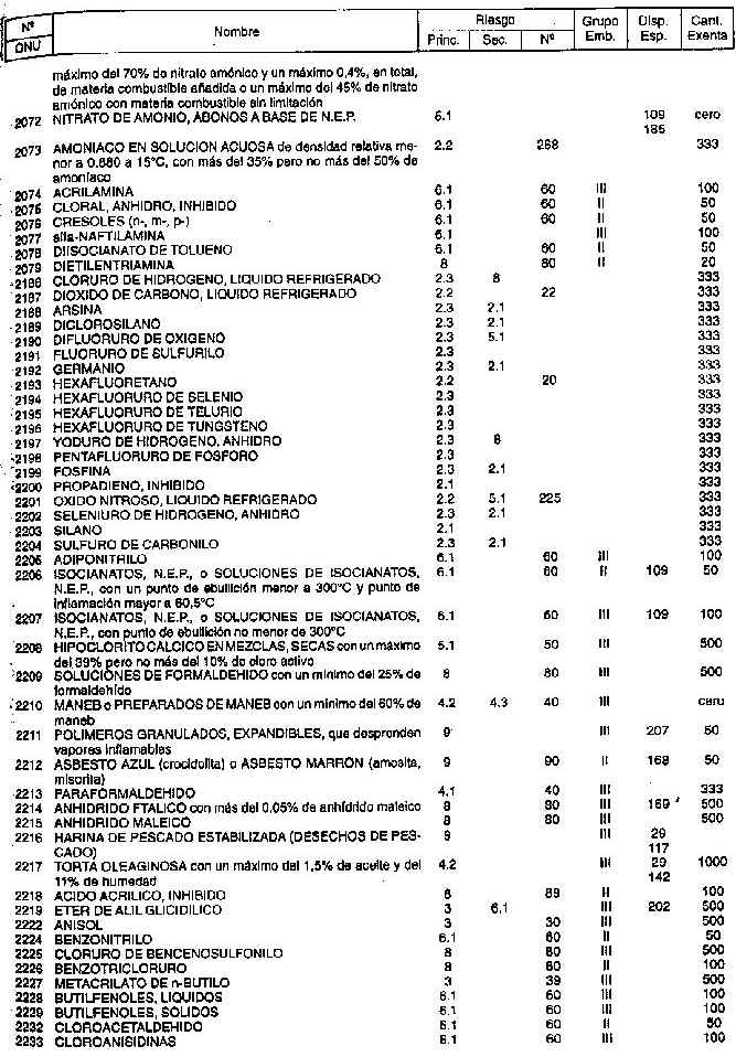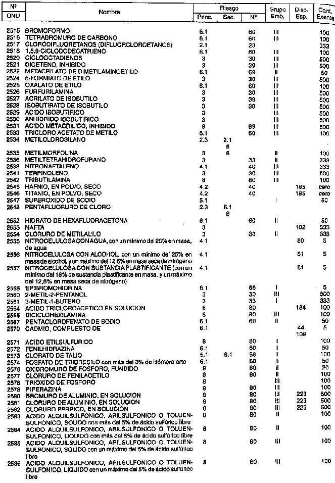 Resolución (SOPT) 195/97. Item 4.3 - Listado de mercancías peligrosas por orden numérico.
