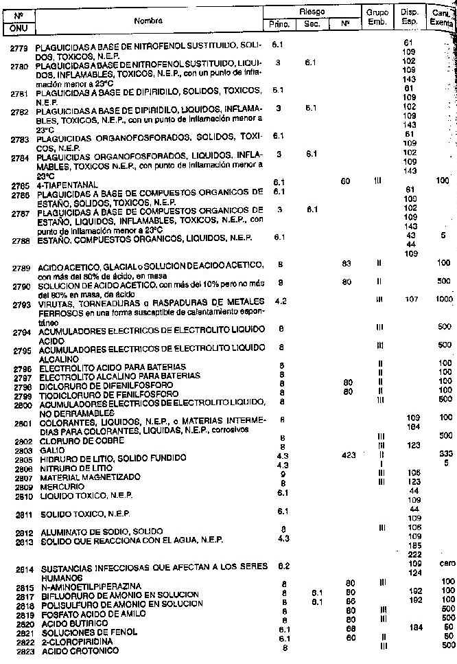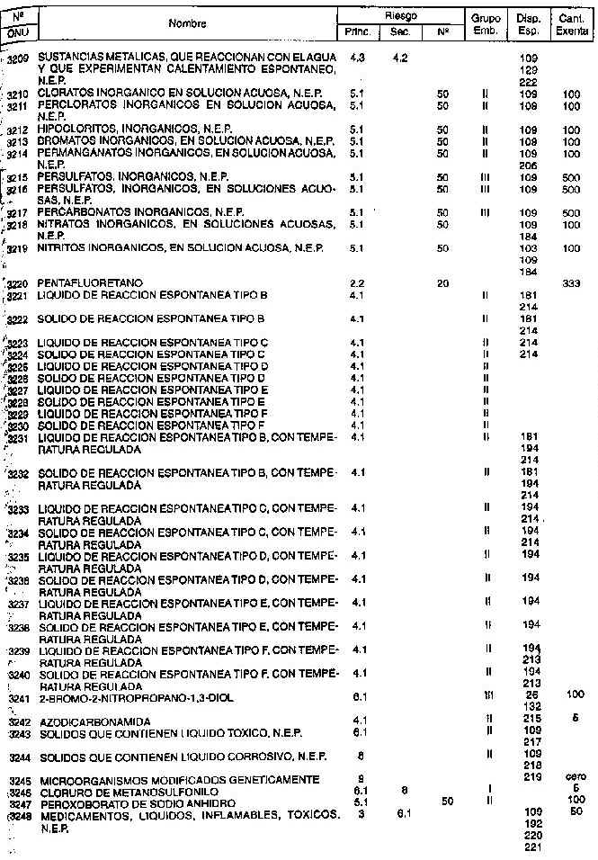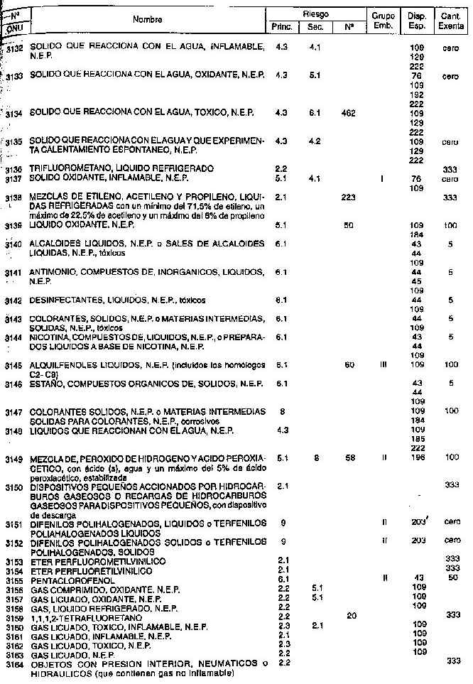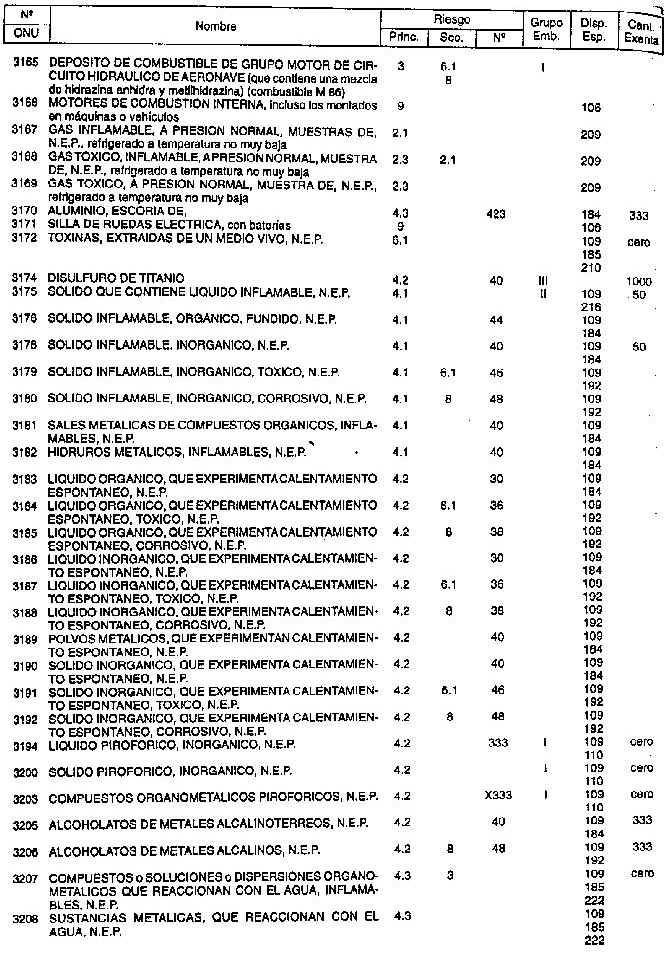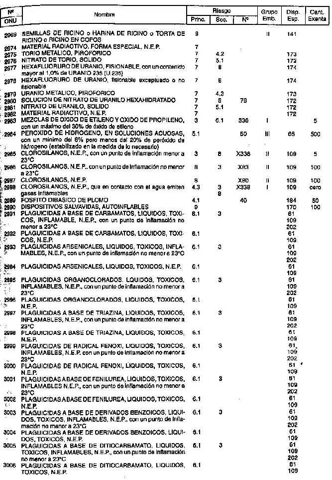 Resolución (SOPT) 195/97. Item 4.3 - Listado de mercancías peligrosas por orden numérico.