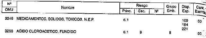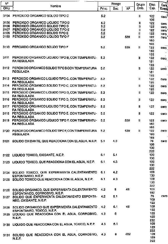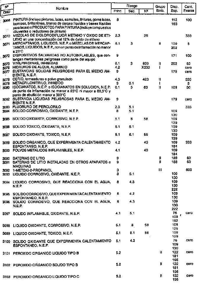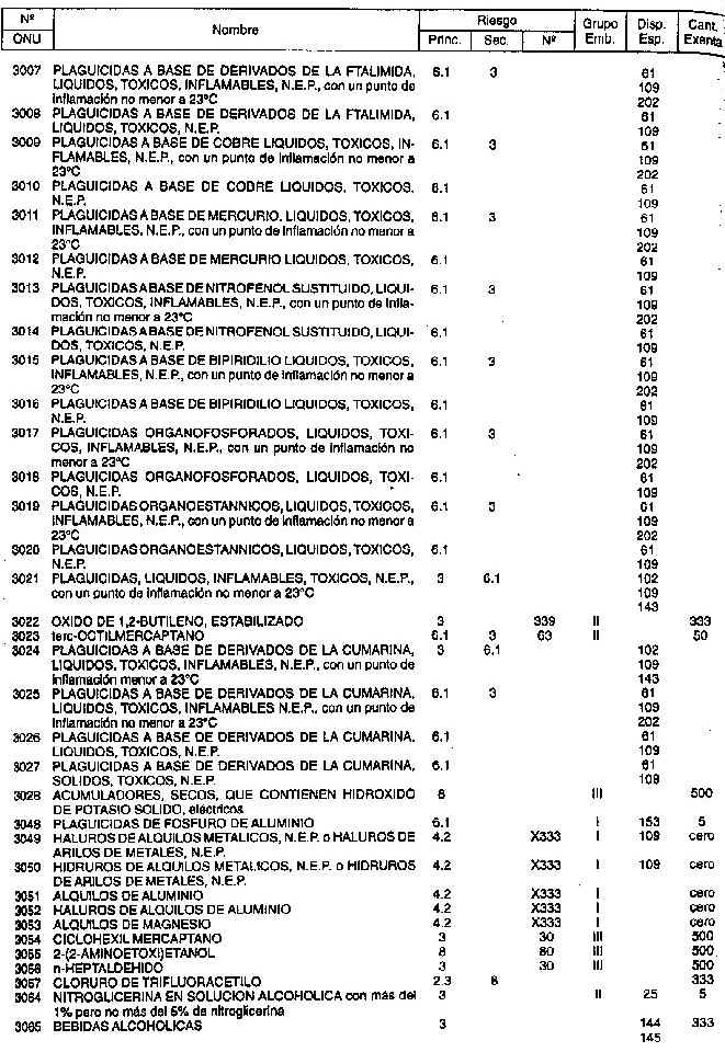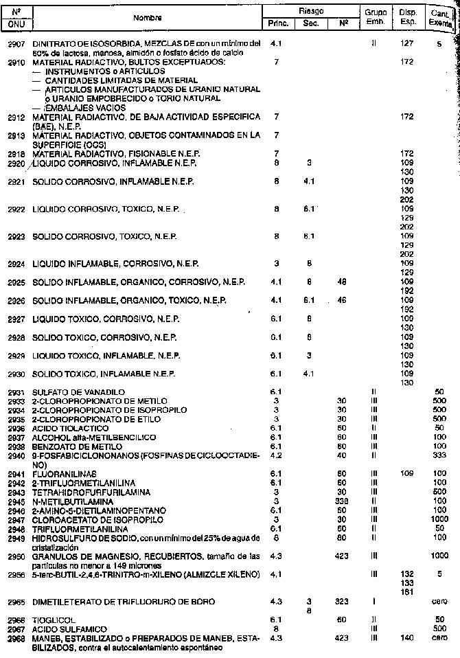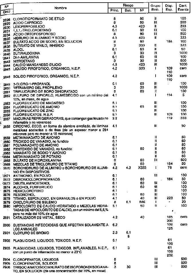Resolución (SOPT) 195/97. Item 4.3 - Listado de mercancías peligrosas por orden numérico.