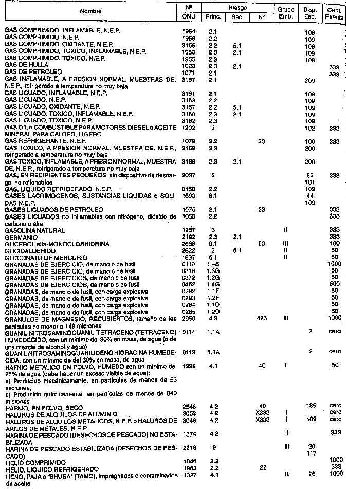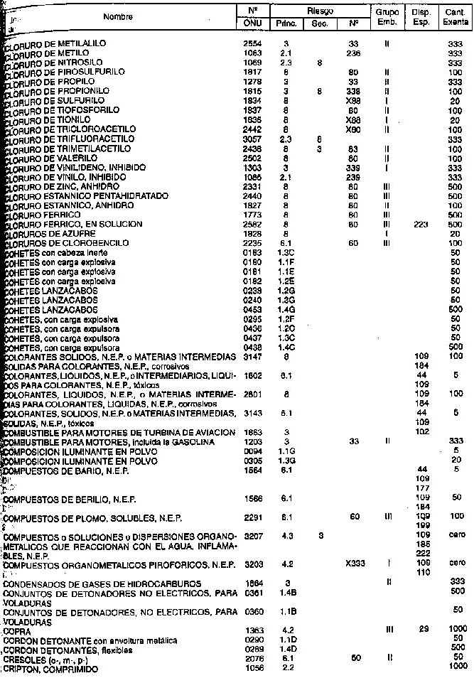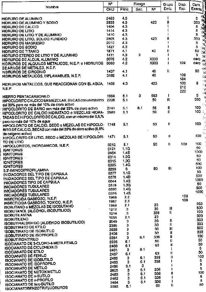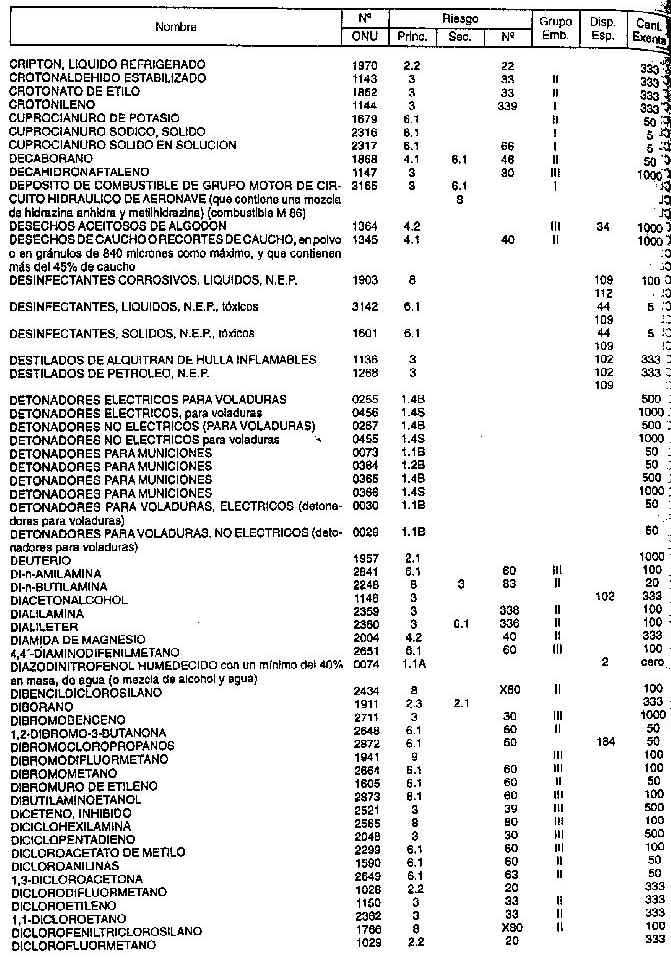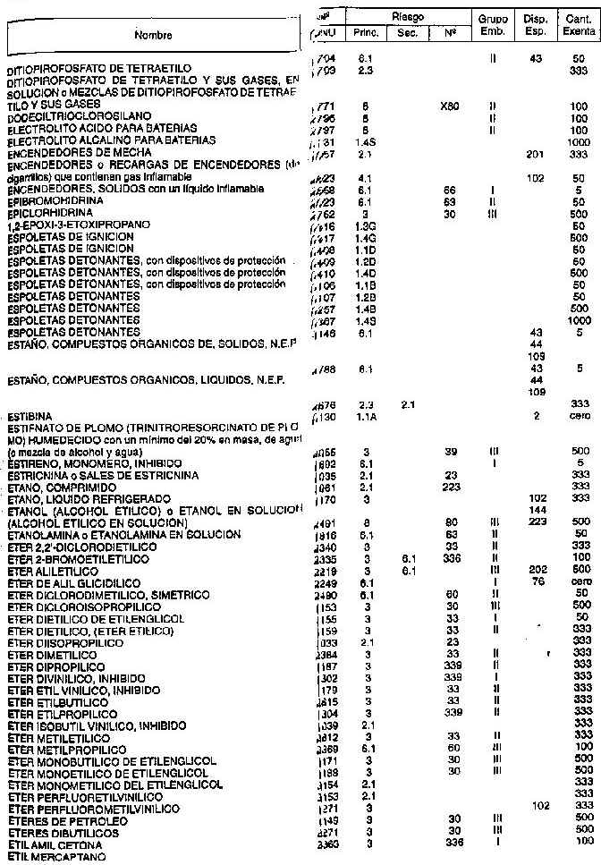 Resolución (SOPT) 195/97. Item 4.4 - Listado de mercancías peligrosas por orden alfabético.