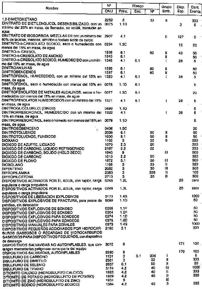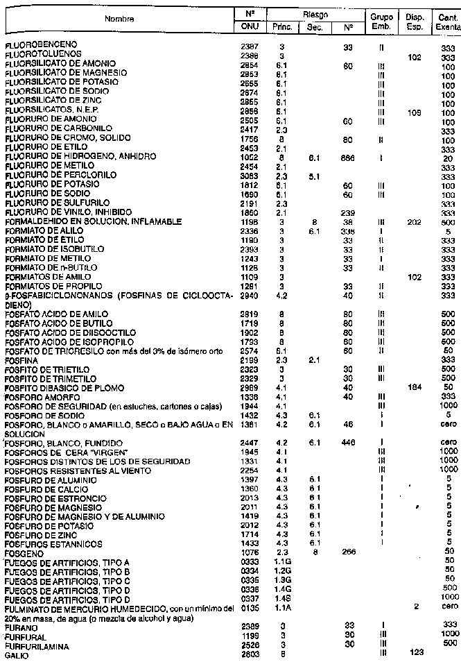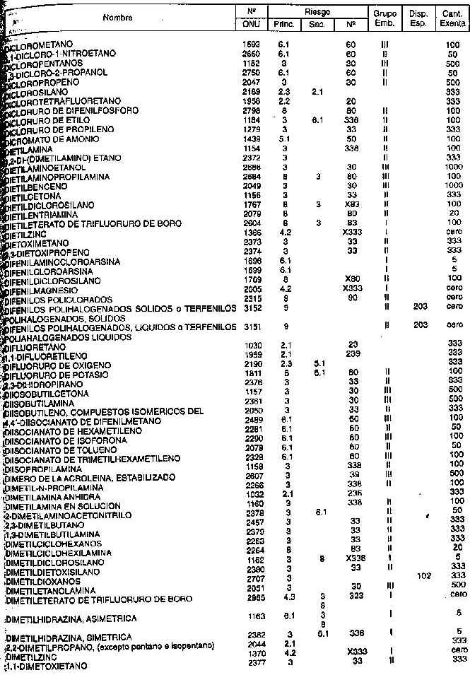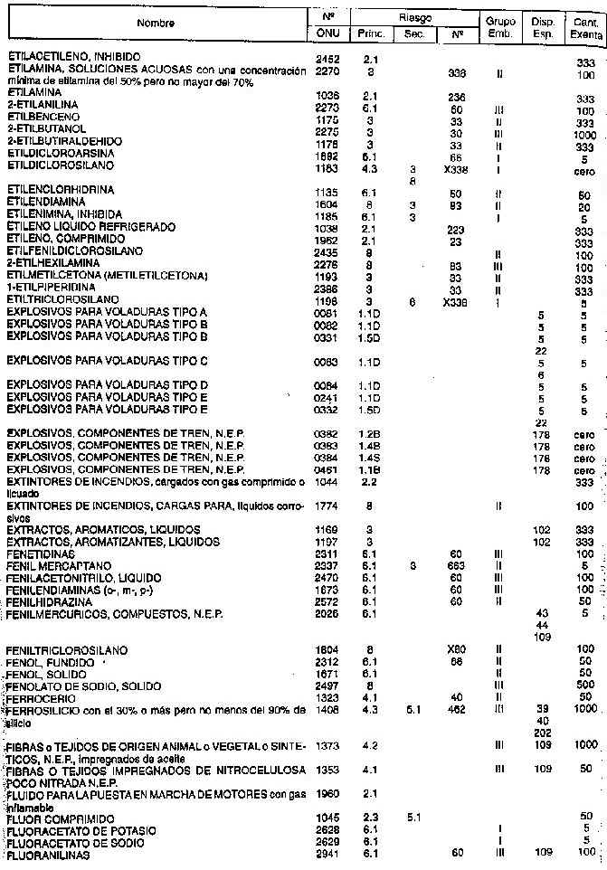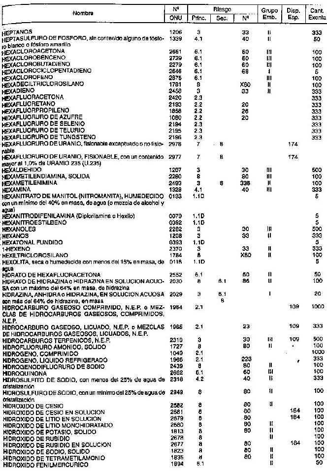 Resolución (SOPT) 195/97. Item 4.4 - Listado de mercancías peligrosas por orden alfabético.