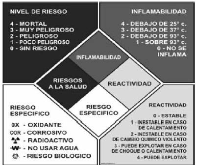 químicos según la norma NFPA 704 - ROMBO NFPA (National FIRE Protection