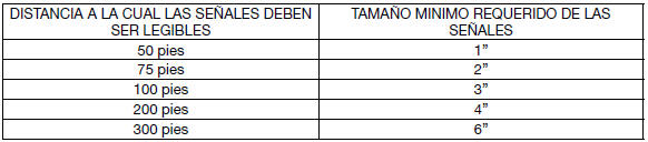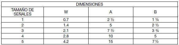 horizontal y vertical del rombo no deben ser menores a 1 pulgada (2.5 cm).