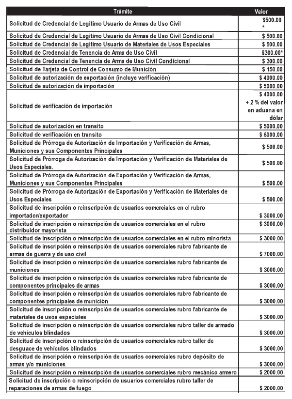 Credencial de Tenencia de Arma de Uso Civil, que se valorizarán mediante los