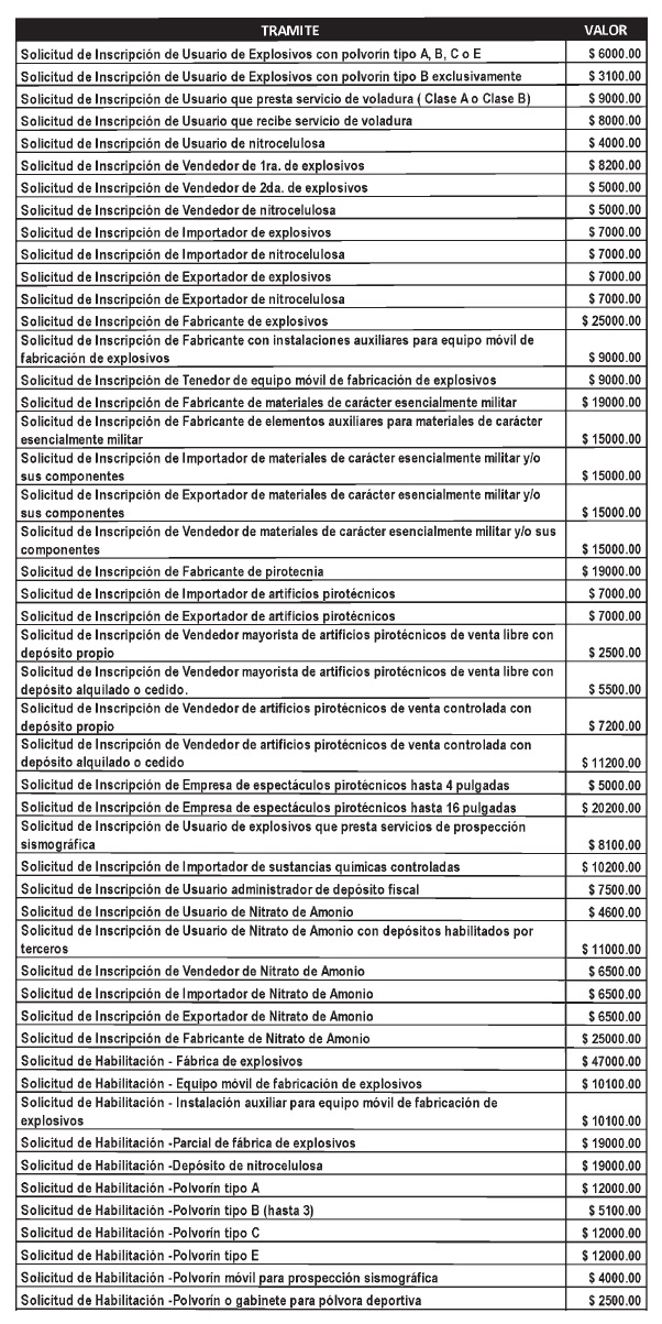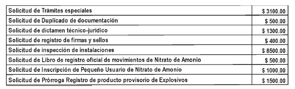 tramitaciones relacionadas con pólvoras, explosivos, pirotecnia y afines,