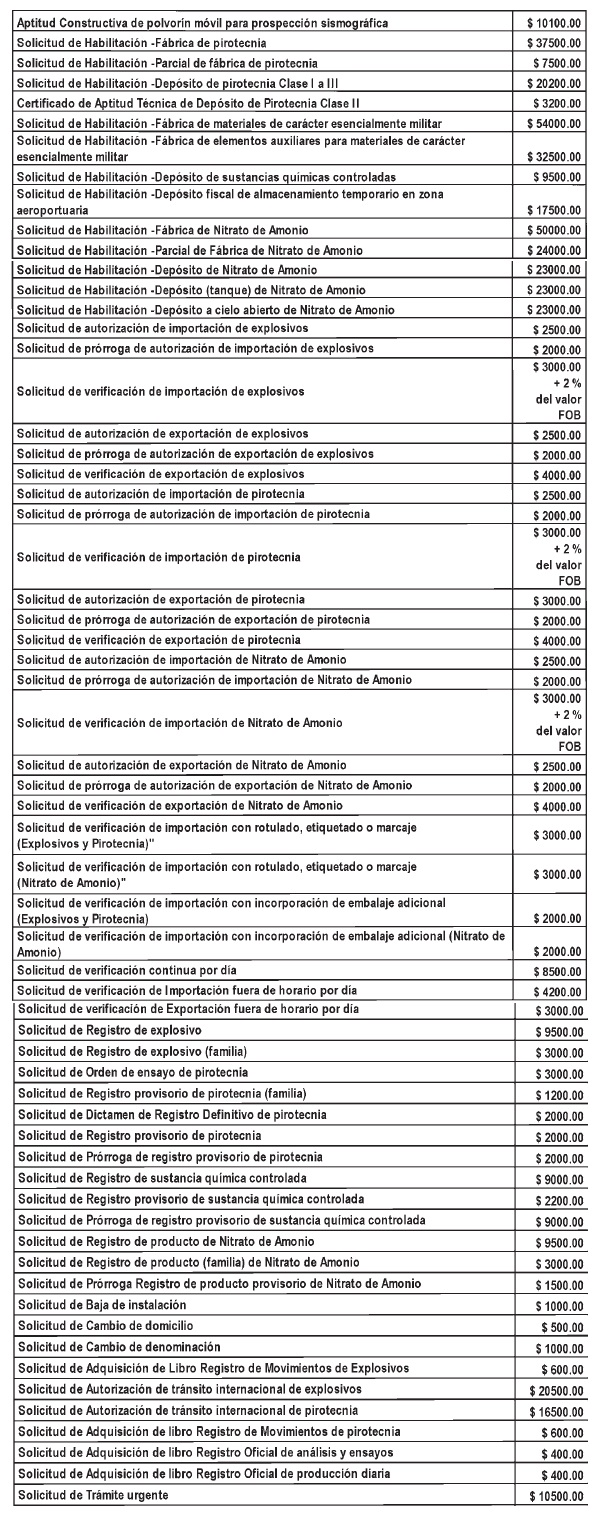 explosivos y afines, establece en su Capítulo XIII relativo a tasas,