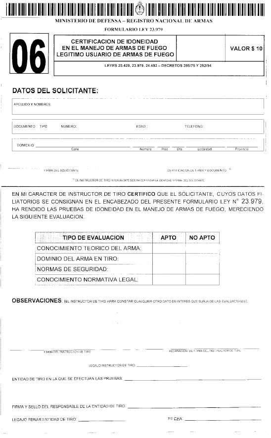 Formulario Ley 23.979 Tipo 06 de Certificación de Idoneidad en el Manejo de