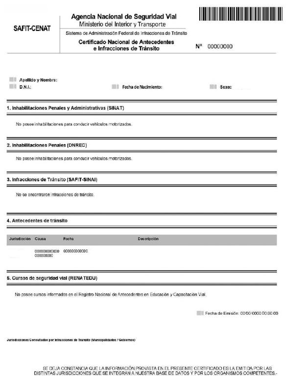 Certificado Nacional de Antecedentes de Tránsito —CENAT— oportunamente
