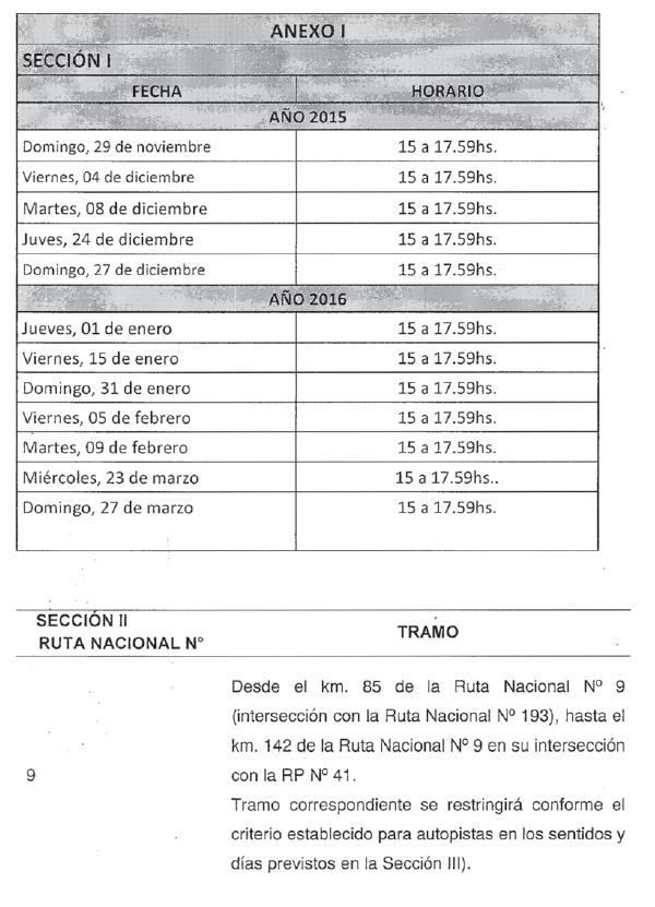 no podrán circular por la Ruta Nacional N° 09 desde el km. 85 hasta el km.